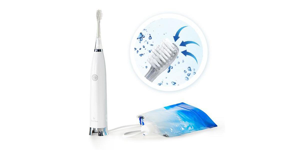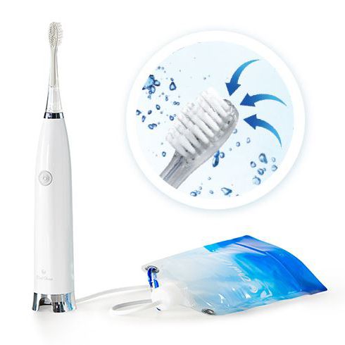 • Tannbørste og sug i ett – væske og spytt suges bort direkte under tannpuss.